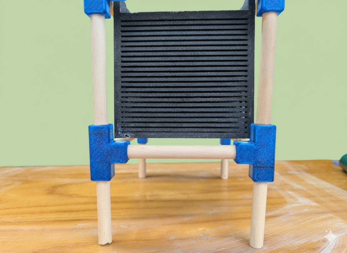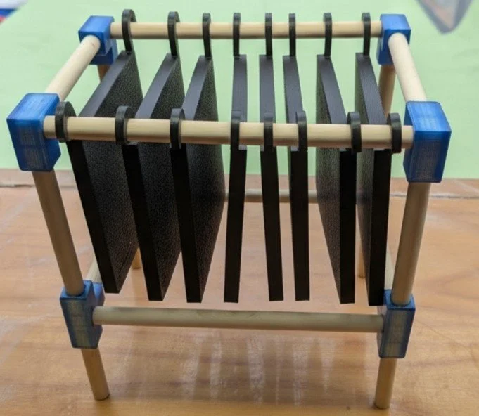 Frame: The robust, yet lightweight, frame is crafted from Birch Dowels and held together with precise PETG connectors, providing stable suspension for the cartridges. Frams is designed to be placed above or inside attractant container.