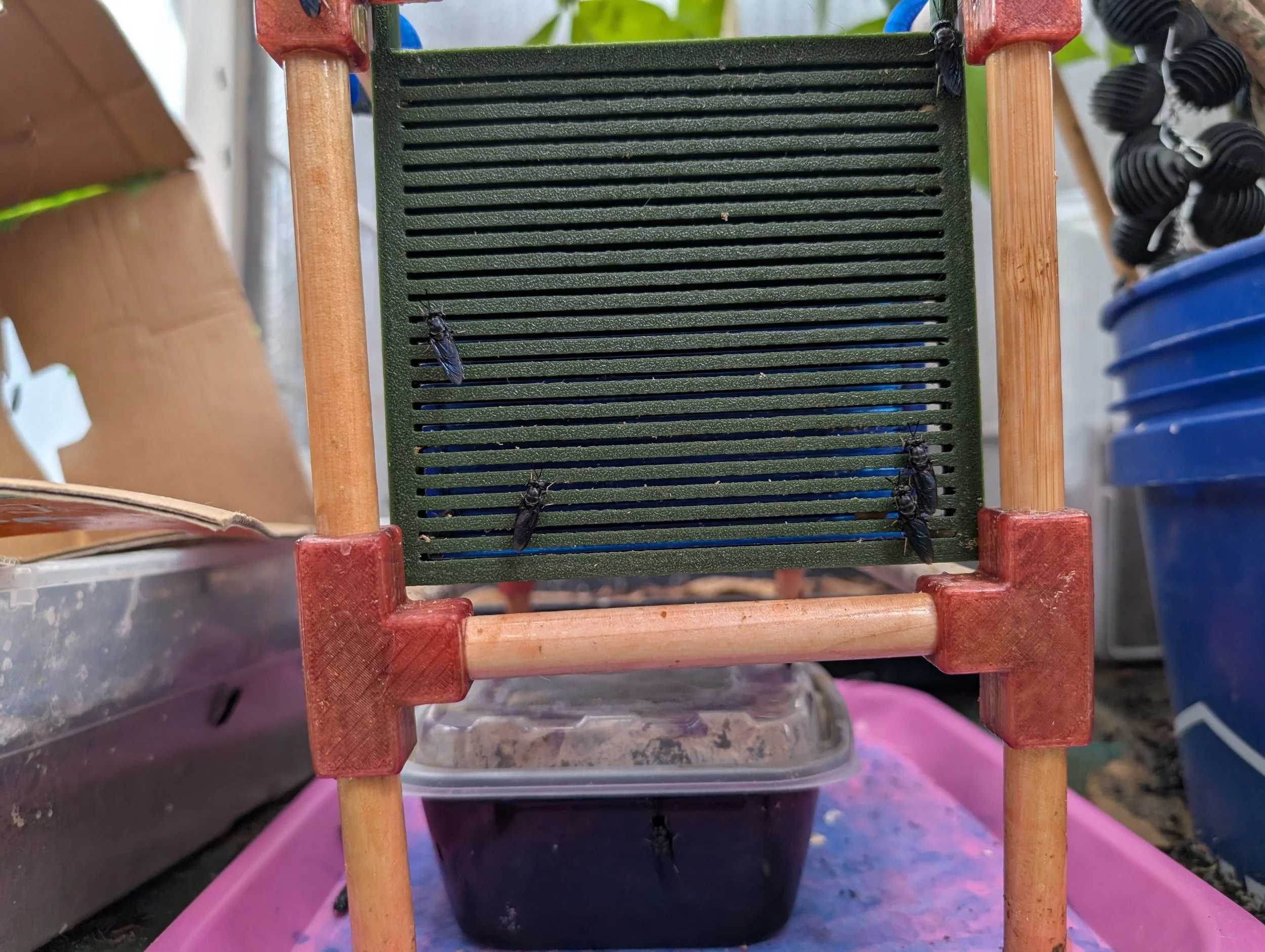 Cartridges: Made entirely of durable PETG, these cartridges are built to withstand the humid conditions of an active BSFL breeding environment for years of reliable use.